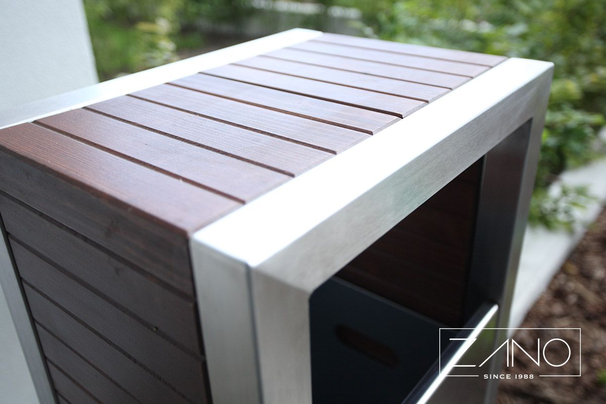 Der Abfallbehälter Pavo ist das nächste Modell des Produktstils Modern – einer Linie moderner, stilvoller und ästhetischer Produkte, die für gegenwärtige städtische Architektur konzipiert sind. Pavo basiert auf der Produktreihe Simple und durch einige zusätzliche Elemente modifiziert. Dank des geschlossenen Gehäuses wirkt es deutlich stabiler, als das Simple Modell. Das wichtigste Merkmal sind aber die hölzernen Leisten, die im Gehäuse verbaut sind. Dadurch fügt sich der Abfallbehälter perfekt in Räume mit hölzernen Elementen und rohen Dekorelementen ein. Der Schutzdach des Behälters Pavo ermöglicht eine Nutzung sowohl im Innen-, als auch im Außenraum. Das Modell Pavo wird aus Edelstahl hergestellt. Der verwendete Edelstahl macht das Produkt auch bei einer intensiven Nutzung und bei ungünstigen äußeren Witterungseinflüssen langlebig und robust.