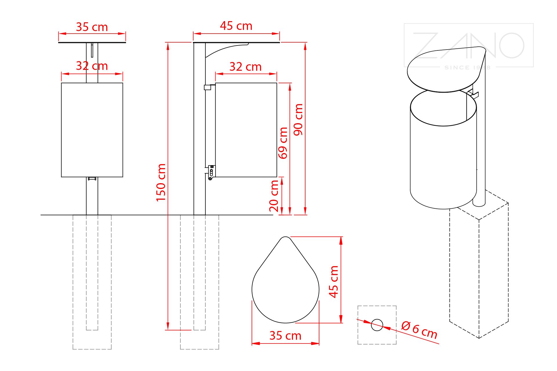 Das Modell Porto 03.093 ist ein klassisches Projekt eines Abfallbehälters auf einem Standpfosten. Die gesamte Konstruktion besteht aus Karbonstahl, sodass Sie jede Farbe aus unserer RAL-Palette wählen können. Das schlichte Design des vorgestellten Abfallbehälters wird durch ein funktionelles Dach bereichert, das den Inhalt vor äußeren Einflüssen schützt. Ein weiterer großer Vorteil ist der attraktive Preis des Produkts. Durch das universelle Design fügt sich dieses Produkt sowohl in den Charakter moderner Gebäude, als auch in den Stil alter Stadtarchitektur ein.
