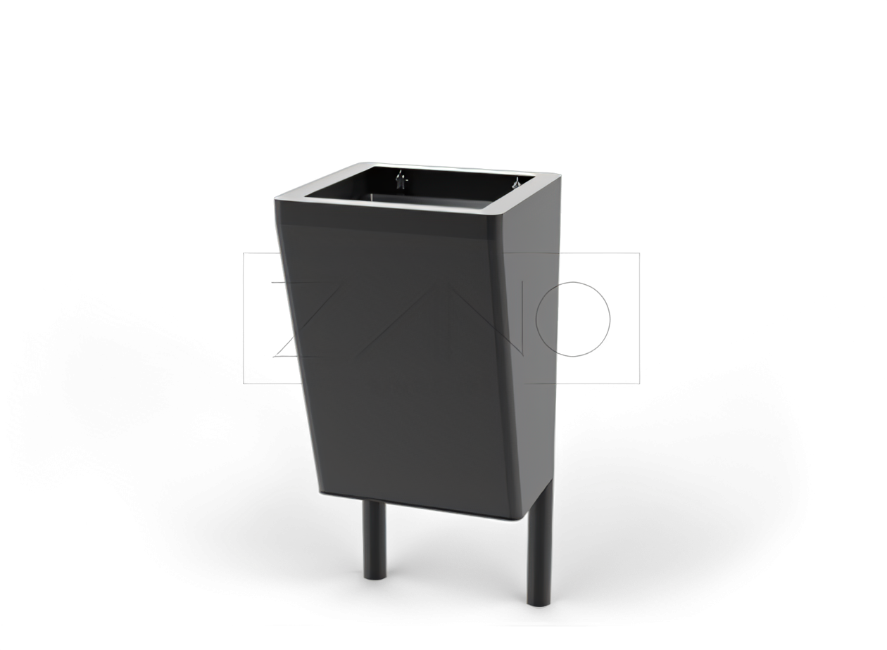 Der Scandik Abfallbehälter ist ein unverzichtbares Element im öffentlichen Außenraum. Sein minimalistisches Design wird sich garantiert an die meisten Städte, Straßen, Parkanlagen, Boulevards, Einkaufszentren und Bahnhöfe anpassen. Sie gehören zu der Scandik Produktreihe, die außerdem auch Sitzbänke, Pflanzkübel, Solarladestationen und Mülltrennungssysteme beinhaltet. Das Produkt wird komplett aus Stahl hergestellt, abgestützt durch zwei Ständer, die für das Einbetonieren gedacht sind. Zur Auswahl stehen Edelstahl und Karbonstahl. Karbonstahl kann hinzu noch verzinkt und in einer beliebigen RAL Farbe pulverbeschichtet werden. Um den Austausch der Müllsäcke zu erleichtern, besitzt der Abfallbehälter einen Einsatz aus galvanisch verzinkten Blech.