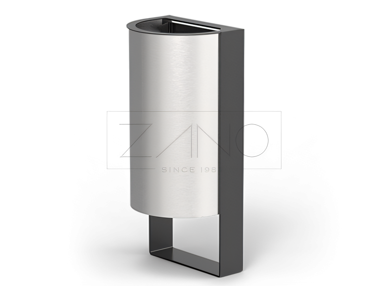 Das Modell 03.044 ist ein weiterer Abfallbehälter, der Teil der preislich attraktiven Produktreihe Start ist. Das Produkt ist relativ günstig, besitzt aber trotzdem ein originelles und durchdachtes Design, hochwertige Materialien und eine solide Verarbeitung. Der Abfallbehälter Start wird aus Karbonstahl bzw. Edelstahl hergestellt. Die Ummantelung des Behälters wird in jeder Variante aus Edelstahl herstellt. Der Behälter besitzt die Form einer durchgeschnittenen Walze, die auf zwei Standfüßen steht. Durch seine moderne Form passt der Abfallbehälter Start ideal zu Wohngebieten, Parkanlagen oder Städtezentren.