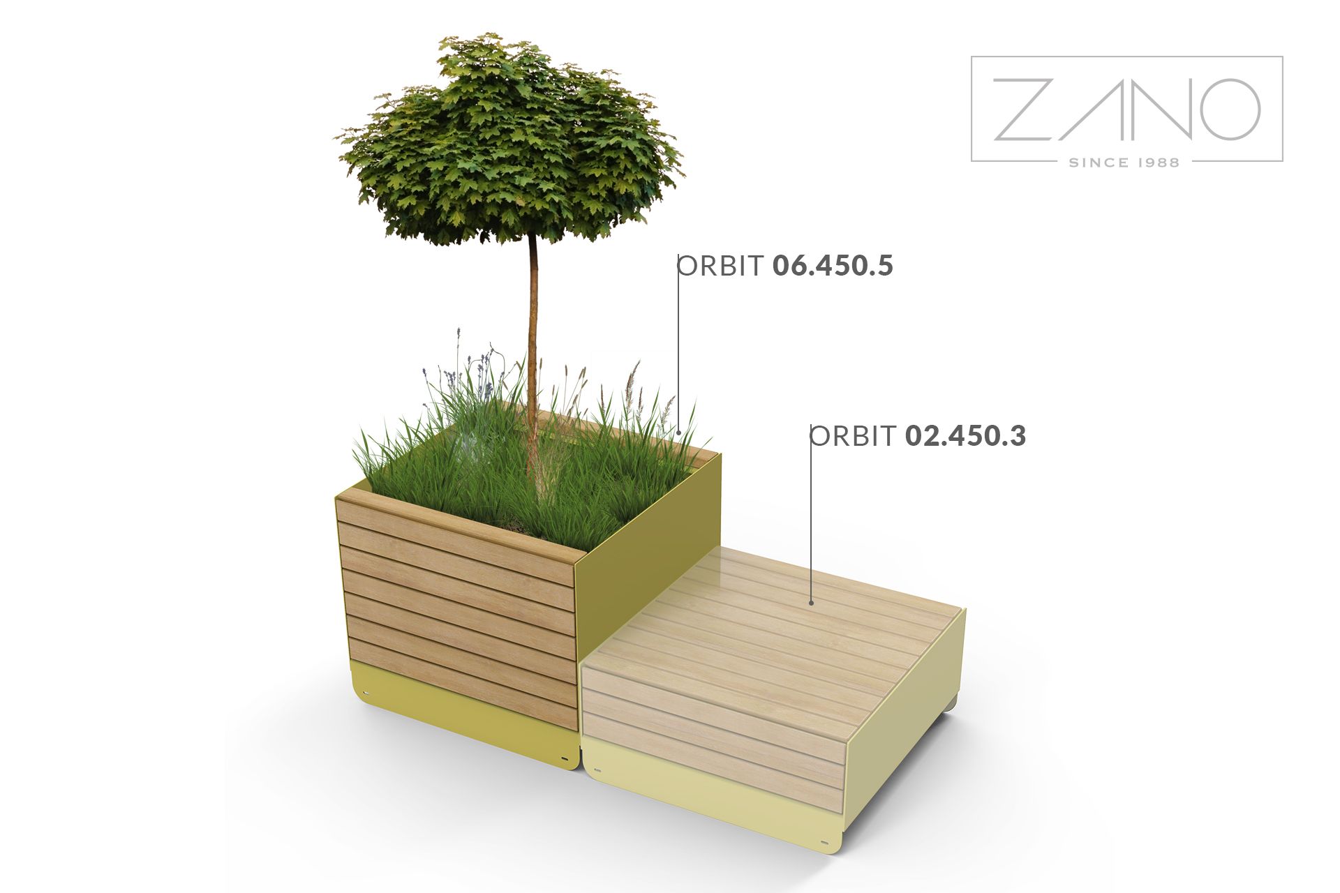 Orbit ist eine Serie von modularen Bänken und Töpfen, die in verschiedenen Kompositionen kombiniert werden können, was das Erscheinungsbild des Raumes, in dem sie aufgestellt werden, deutlich aufwertet. Das interessante Design und das solide Konzept der Bänke machen die Möbel der Serie Orbit vielseitig einsetzbar. Sie passen sowohl in moderne städtische Räume als auch in die Innenräume von Bürogebäuden oder Einkaufszentren. Aufgrund ihrer Konstruktion können sie parallel zu Wänden, in Raumecken oder in Kompositionen wie Kreisen oder Halbkugeln aufgestellt werden. Stahl und Holz höchster Qualität, die bei der Herstellung verwendet werden, garantieren die Haltbarkeit und das schöne Aussehen der Orbit-Bänke.