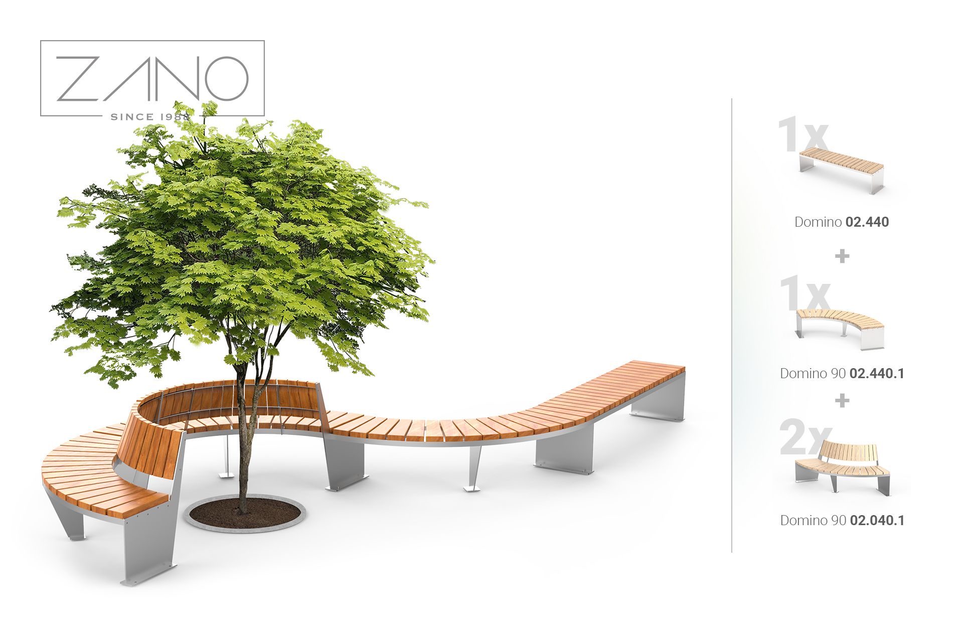 Die Sitzbank Domino 02.440 ist eine moderne modulare Bank von ZANO. Die Bänke der Domino Reihe können zu zahlreichen Aufstellungen zusammengestellt werden und ergänzen somit jede Fläche. Die Bank Domino wird aus Edelstahl und Holz (Nadelholz oder Tropenholz) hergestellt. Durch den Edelstahl ist die Bank stabil, aber auch beständiger gegen Witterungseinflüsse und mechanische Beschädigungen, die durch eine häufige Nutzung verursacht werden können. Die einfache und klassische Domino Bank ist vor allem eine Erweiterung der restlichen bogenförmigen Domino Bänke (60° und 90°). Die Funktionalität, die hochwertigen Materialien und das zeitlose Design – all das sind Merkmale der Domino 02.440 Modelle. Zudem können die Bänke beliebig untereinander kombiniert werden und verschiedene komplexe Aufstellungen in diversen öffentlichen Außenräumen bilden.