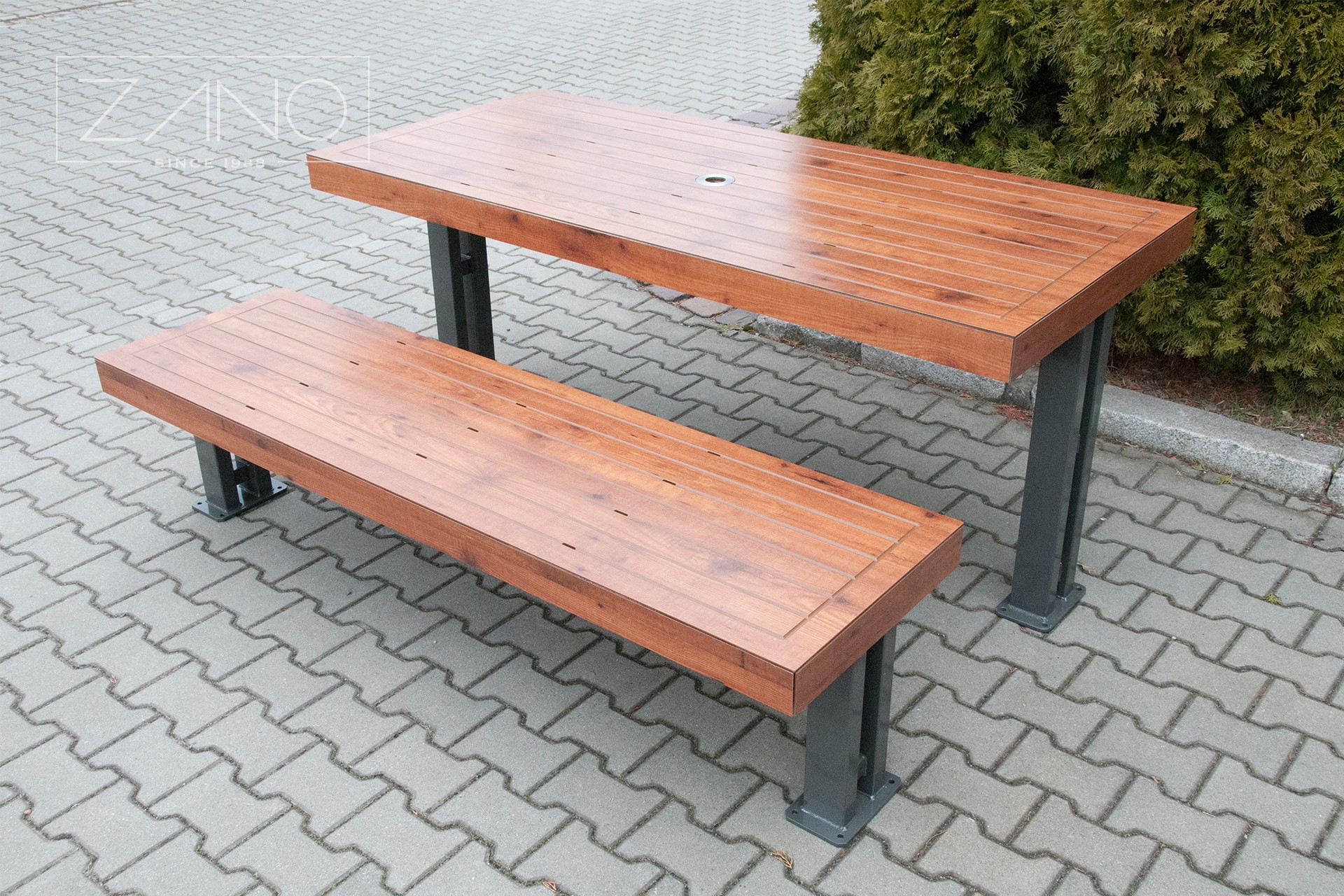 Das Modell Bus ist ein Tisch, der sich an die anderen Stadtmöbel dieser Produktreihe anknüpft, darunter an die stilistisch interessante Sitzbank Bus. Das Design ist eine Anspielung an die traditionellen Bänke, die an Bushaltestellen zu finden sind. Das moderne Profil befindet sich auf zwei Standfüßen aus Stahl und besitzt eine hölzerne Tischplatte. Für die Konstruktion wird wahlweise Edelstahl oder Karbonstahl verwendet. Karbonstahl wird zusätzlich verzinkt und in einer beliebigen RAL Farbe Ihrer Wahl pulverbeschichtet. Für die Tischplatte können Sie europäisches Nadelholz oder Tropenholz wählen. Das Produkt wird mit Dübeln im Untergrund befestigt. Alternativ kann es frei stehend platziert werden. Der Tisch eignet sich perfekt für moderne Areale, in denen viel Wert auf eine minimalistische Ausstattung gelegt wird.